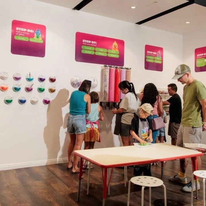 Slime Kitchen’s immersive ten-step process guides customers as they select their base, choose scents, add colors, and incorporate mix-ins to create custom slimes as unique as their imaginations. Designed to ignite creativity and promote sensory learning, the experience transforms slime-making into a journey of connection and discovery.